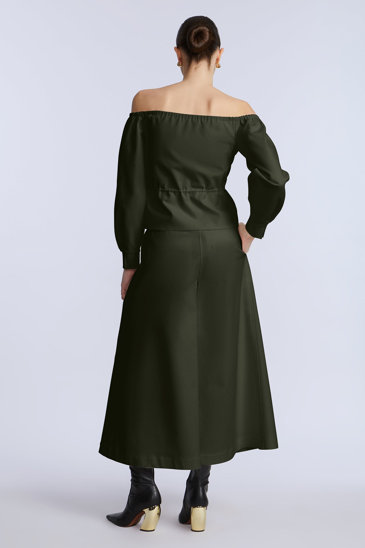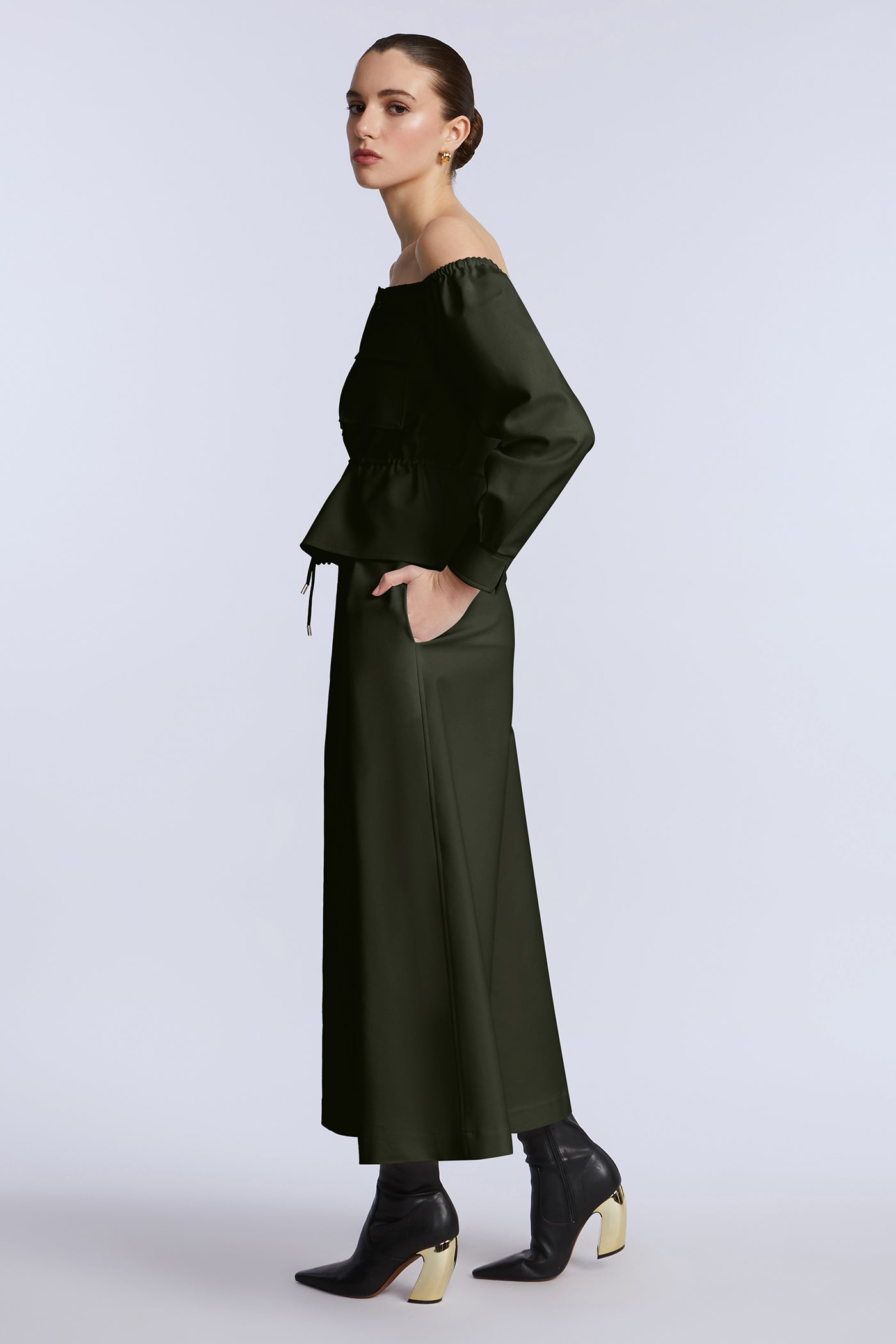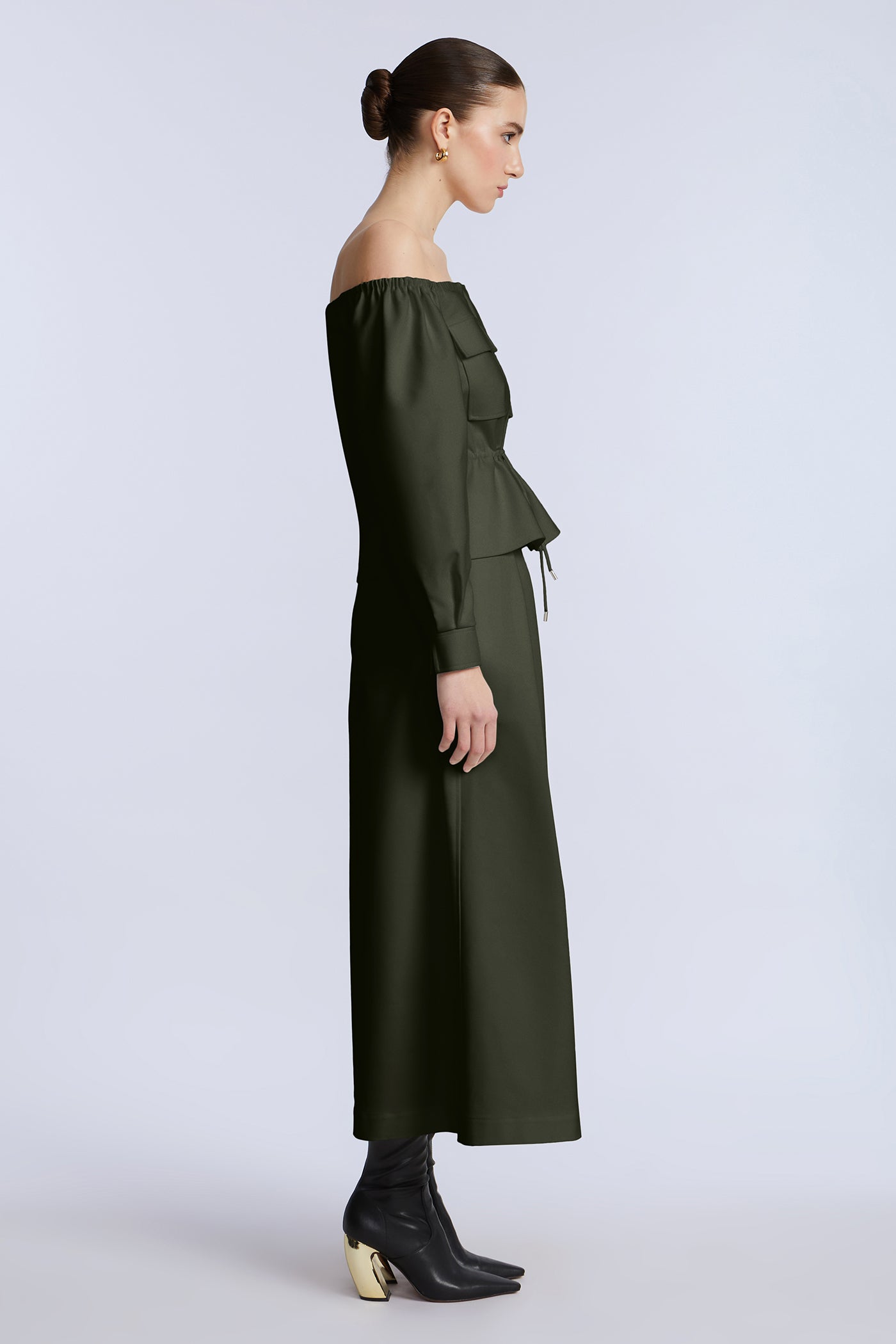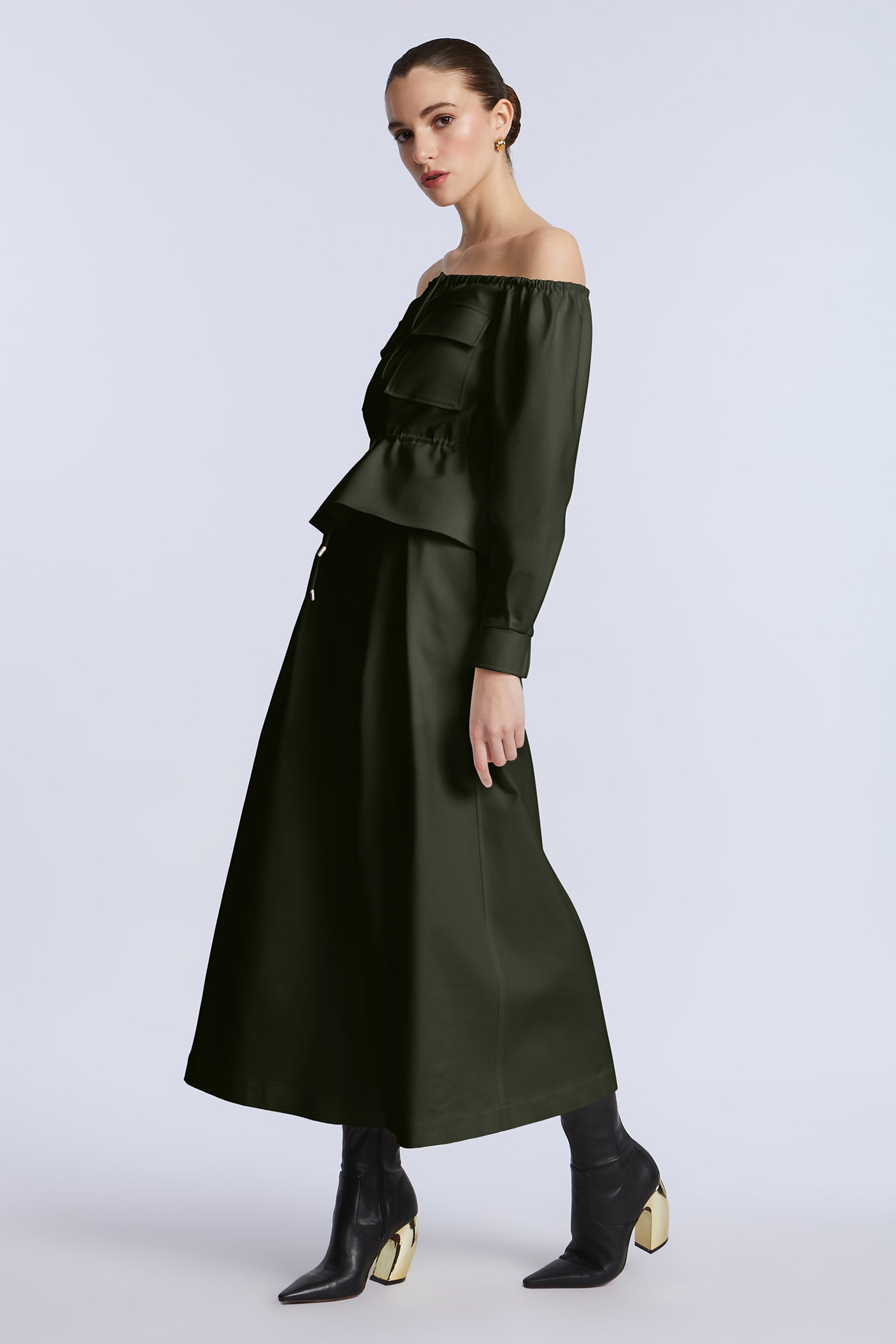 Wide-leg cropped pants in a rich olive green cotton sateen. Designed with pleated front detailing and a clean waistband for a sculpted finish. Add the matching top for a bold monochrome moment.